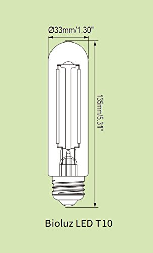 Bioluz LED T10 Dimmable LED Filament Bulb 4W (40W Equivalent) 450 lumens Soft White 3000K, UL Listed