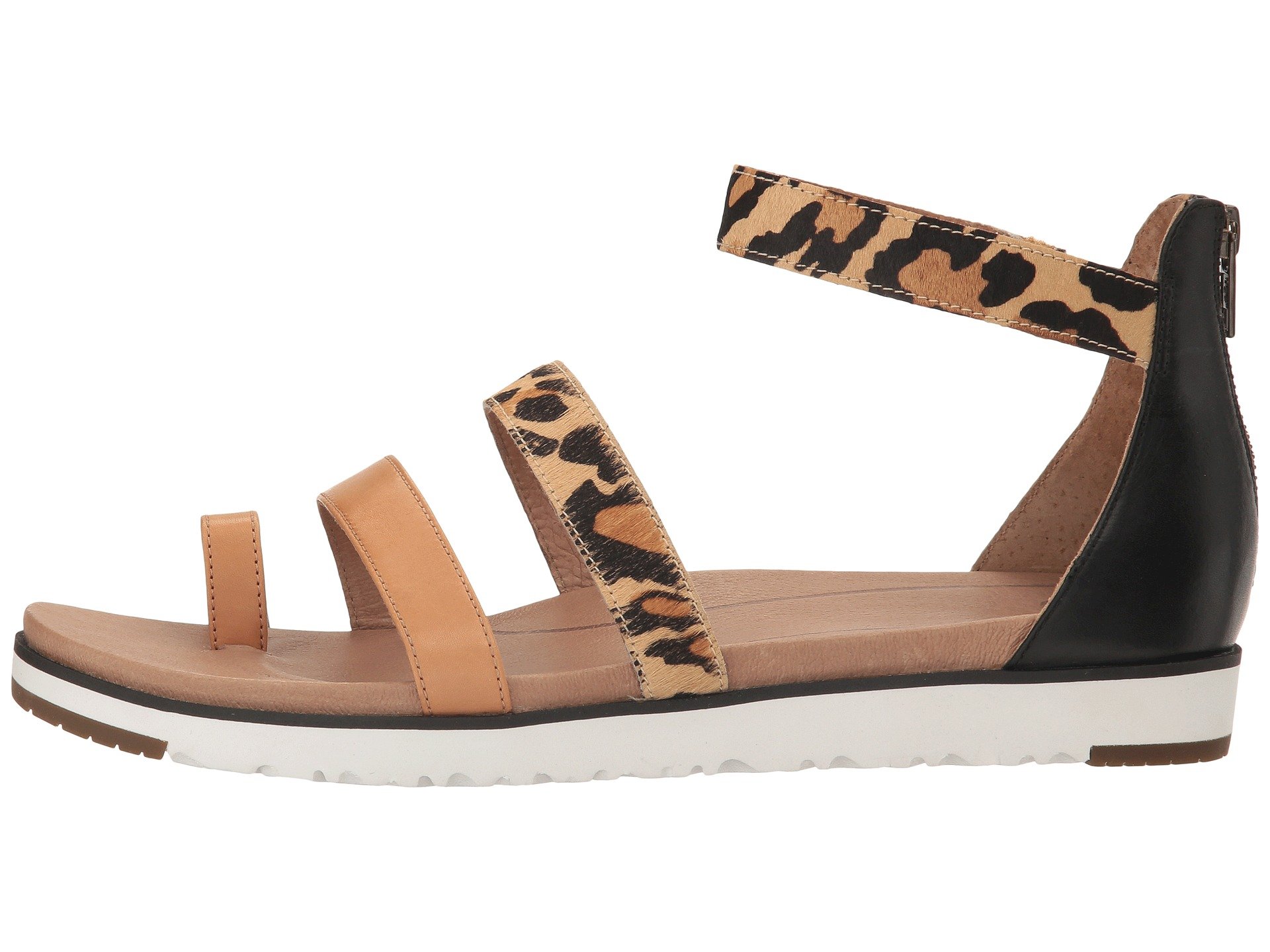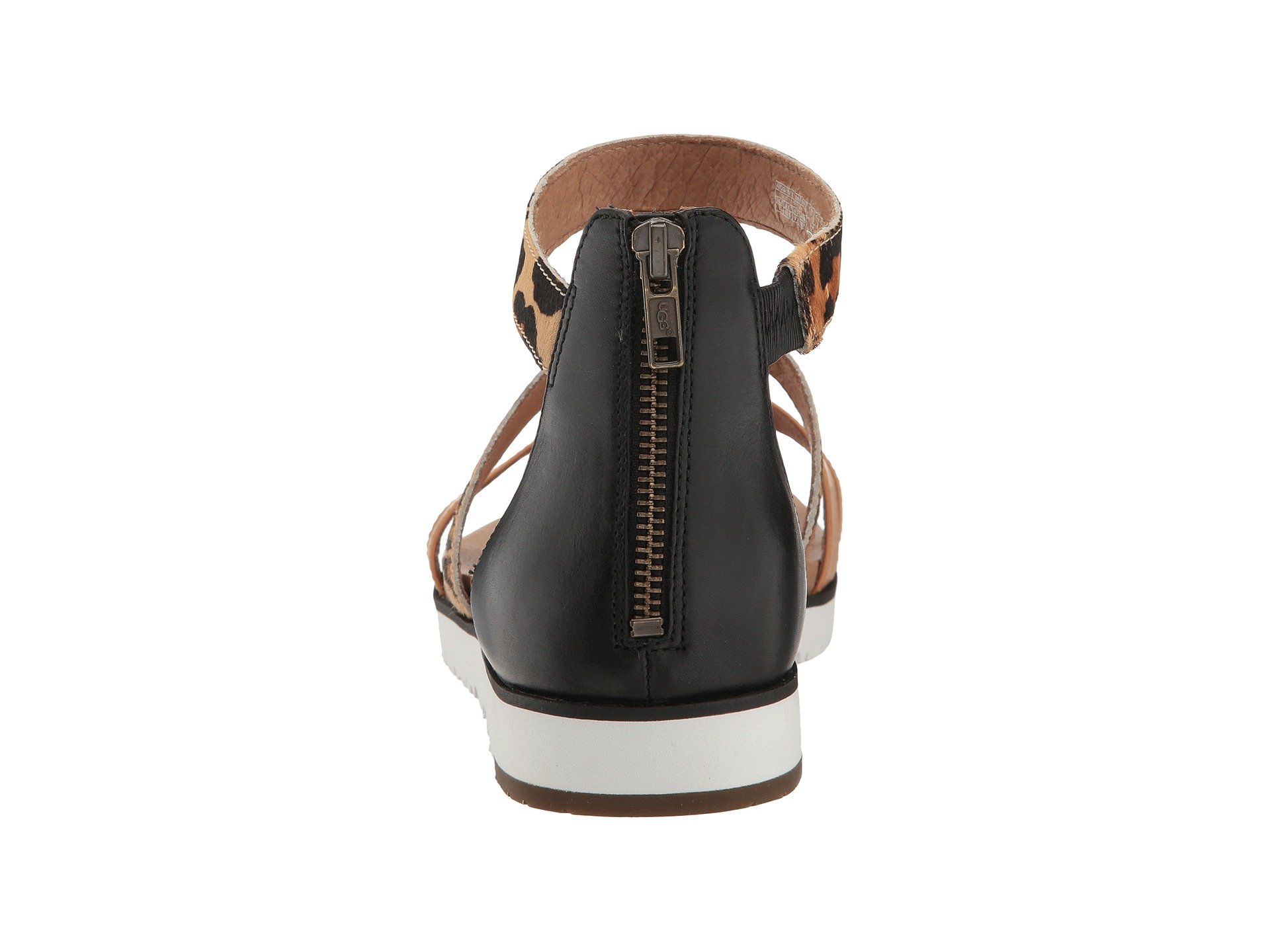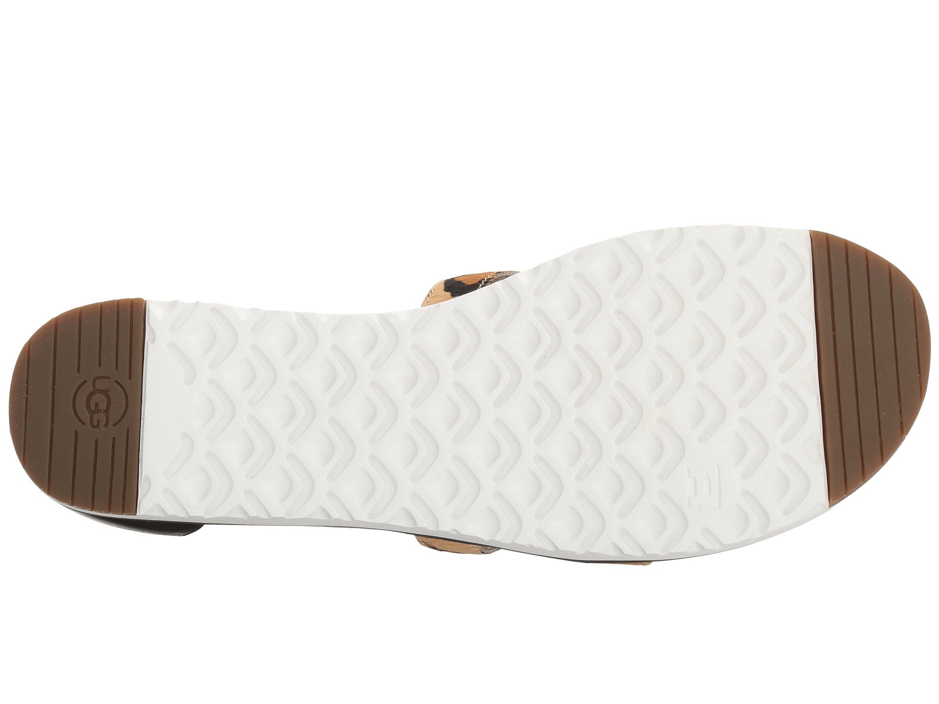 | Product Information SKU: #8808197This item is subject to quantity limitations.Make a fierce statement with the Mina Leopard sandal by UGG?.Smooth leather and leopard-print calf hair upper.Leather lining.Imprint by UGG™ insole.Rubber toe and heel.Treadlite by UGG™ outsole provides increased traction, durability, cushioning and flexibility.This product contains real fur from Sheep, Lamb, or Cow. Fur Origin: Australia, UK, Ireland or United States. Real Fur has been artificially dyed and treated.Imported.Product measurements were taken using size 7, width B - Medium. Please note that measurements may vary by size.Weight of footwear is based on a single item, not a pair.Measurements: Heel Height: 1 1?2 in Weight: 7 oz |