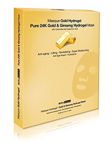 -. Feature : Pure 24k Gold & Ginseng Hydrogel Mask / Anti-aging, lifting, revitalizing, moisturizing / Designed for fast rejuvenation of skin with moisturizing & lifting effects / Perfect for rehydrating dry, damaged skin, leaving facial skin smooth and firm< / Treatment helps to reduce the look of fine lines and wrinkles