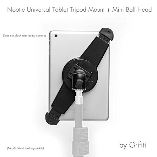Grifiti Nootle Universal iPad and Tablet Mount and Mini Ball Head Adjustable for iPad mini, iPad Air, iPad 1,2,3,4, Samsung Galaxy, Microsoft Surface, Google Nexus and all 7” to 11” Tablets with or without cases 1/4-20 Connector for Displays, Photos, Movi