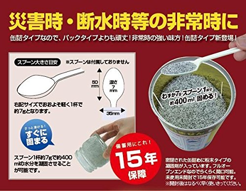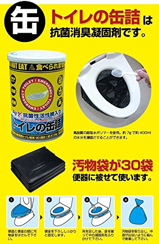 분말 타입의 비상용 화장실(응고 제)를 통조림에 밀봉했다「화장실의 통조림」와「오물대」고, 방한 효과로 체온 저하부터 몸을 지킨다「알루미늄담요」를 보관하여 쉽게 컴팩트한상에세트한 방재세트입니다.제조국:일본,중국 소재 재질:응고 제/초흡수 중합체,야자 껍질 활성탄,은관/본체:스틸,뚜껑 캡:PE,뚜껑:알루미늄 오물대/폴리에틸렌 알루미늄담요/알루미늄 증착 폴리에스텔 상품크기:화장실의 통조림/약φ74.1×H113mm(4호관)고, 상자/약250×78×H150mm 사양:응고 제/사용량 기준:1회 약7g보존 기간/화장실의 통조림:미사용 미개봉에 15년,오물대담요:열화(품질이나 성능 등이 나빠짐) 방지 를 위해 정기적(2~3년에 한 번)교환상에 취급 설명 기재세트내용:(화장실의 통조림(30회분 약210g)고, 오물대×30 포,알루미늄담요)×12세트