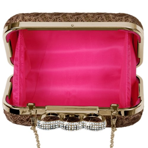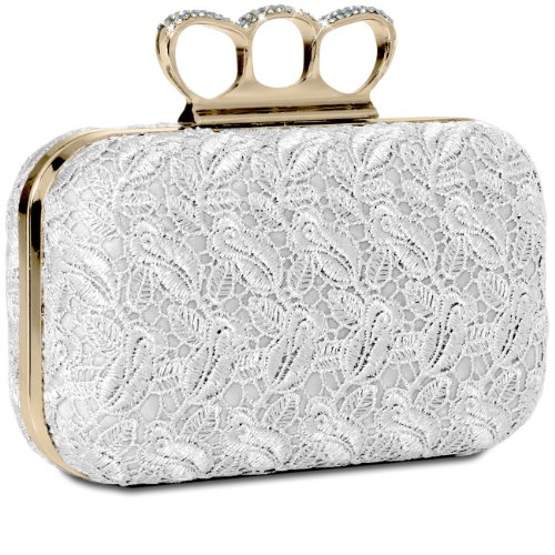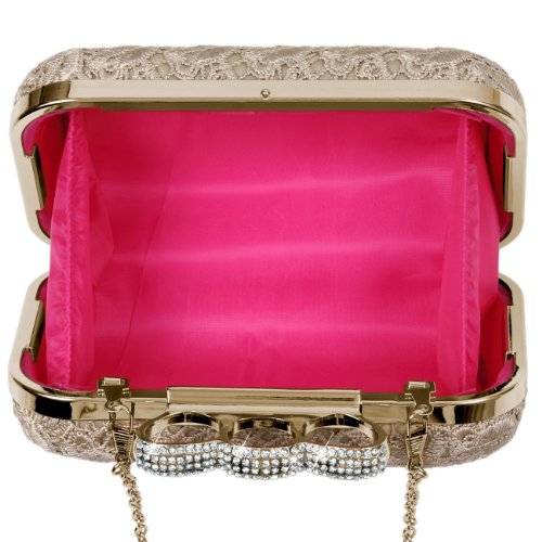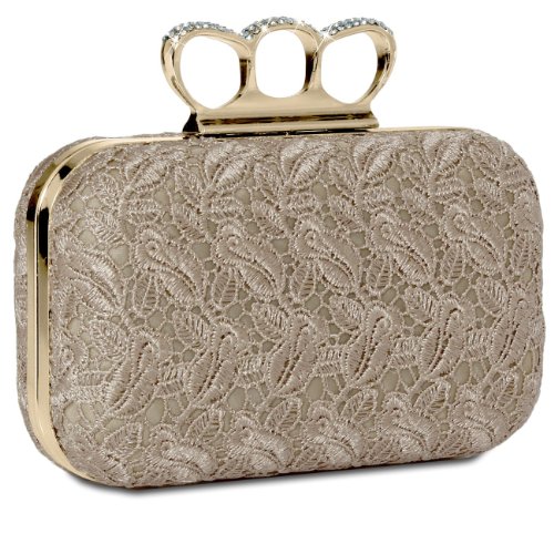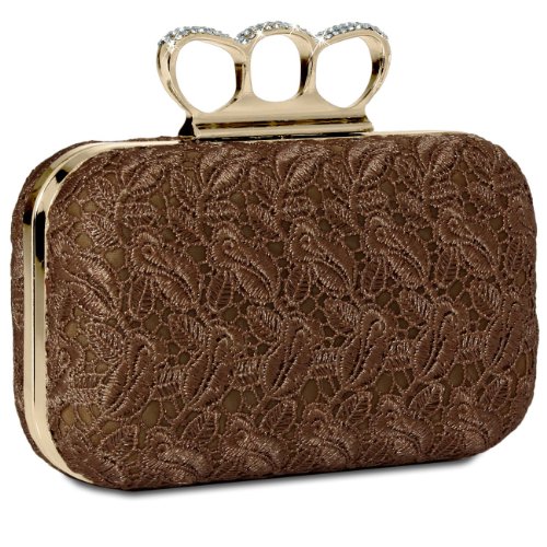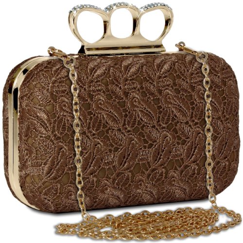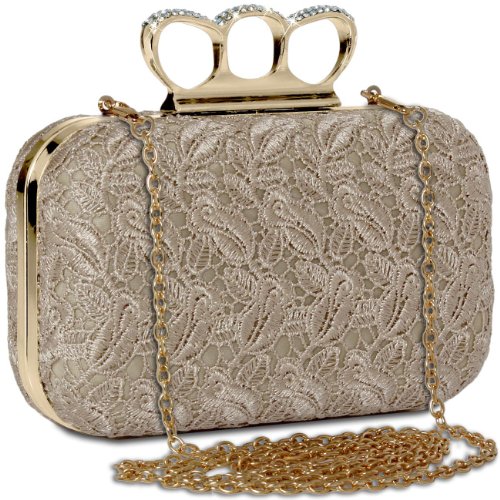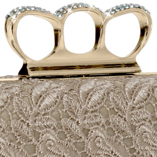 -. Title : CASPAR Damen Schlagring Box Clutch / Abendtasche mit Stoff Häkel Spitze Dekor und Strass Steinen - viele Farben