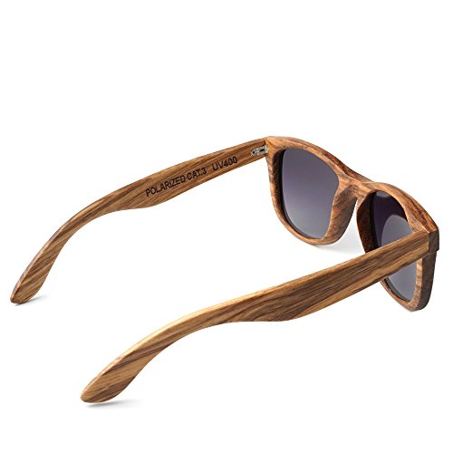 HANDCRAFTED WOODEN SUNGLASSES- Each pair of sunglasses is unique and made from zebra wood laminate with a natural wax coating. The sunglasses are lightweight and can float in the water.