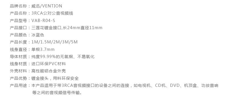 威迅 VAB-R04 DVD机顶盒连接电视av线 红白黄 AV线 莲花音视频线