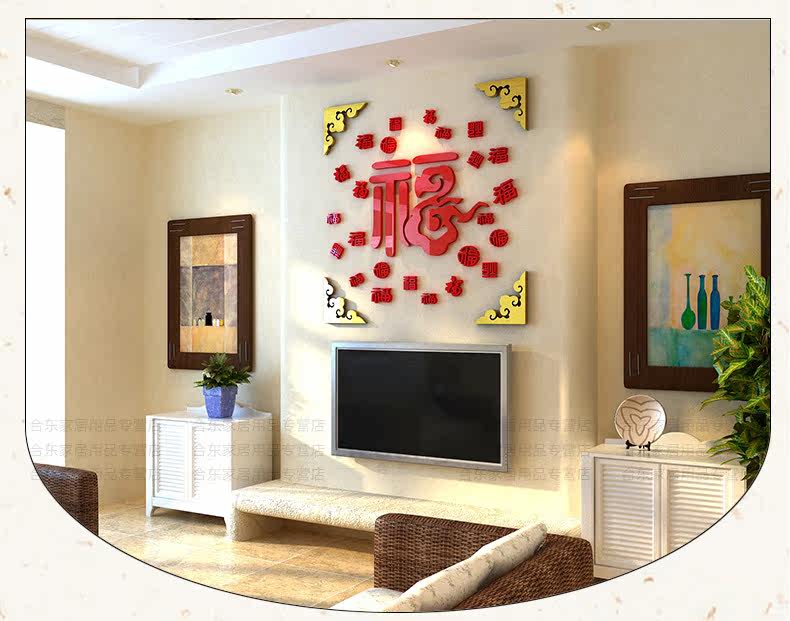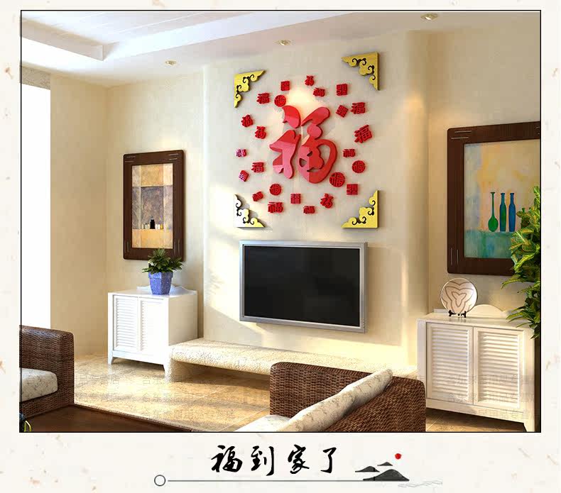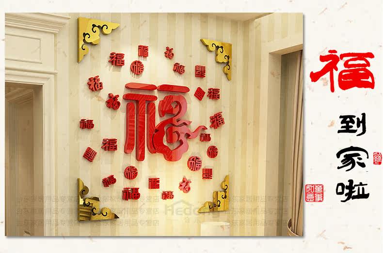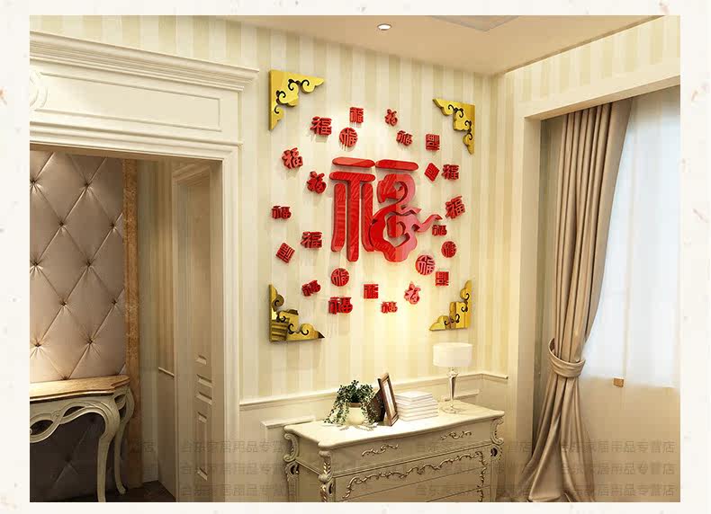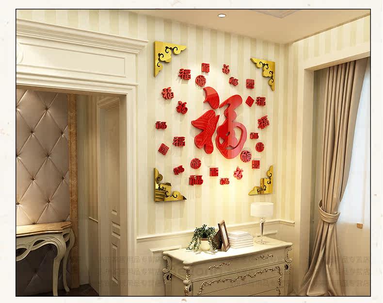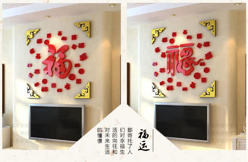 百福图福字墙贴亚克力中国风3d立体墙贴画玄关沙发背景墙装饰贴纸