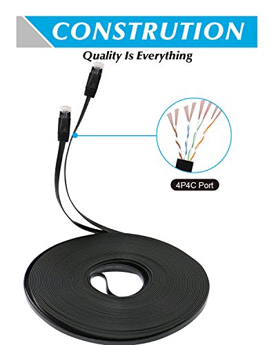 Ethernet cable, [50 Ft] Cat6 Flat Network Cable with Cable Clips, High Speed Internet Cable With Snagless RJ45 Connectors for Xbox One, Xbox 360, PS3, PS4, Switches, Modemn, Router, PC - Black