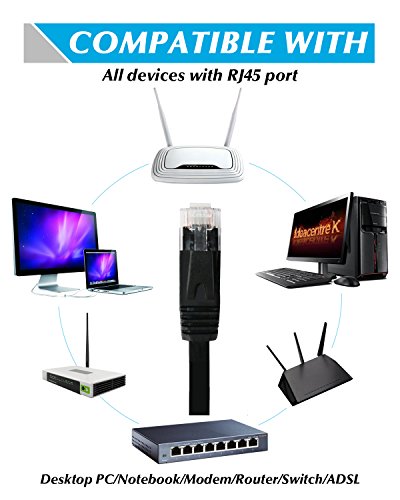 Compatibility: Cat6 ethernet cable is compatible with Cat5/Cat5e, but lower price, higher bandwidth. Provides universal connectivity for Xbox One, Xbox 360, Switches, Routers Modems, PS3, PS4, Computer, Laptop, Printers, ADSL, NAS, VoIP phones and more