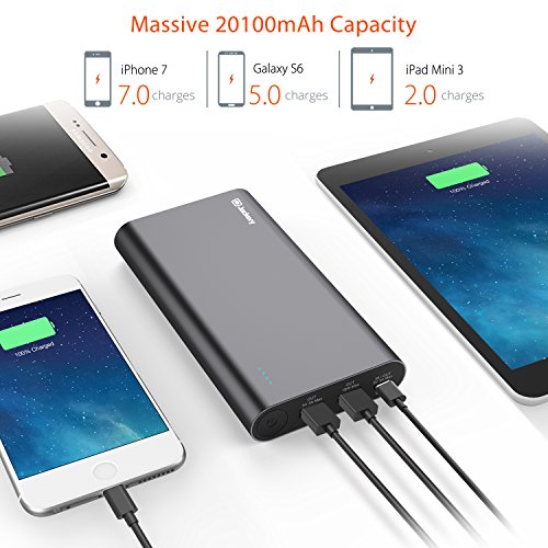 Massive 20100 Capacity: 20100mAh charges an iPhone 6S & 6 almost 8 times, a Galaxy S6 almost 5 times or an iPad Air more than once.