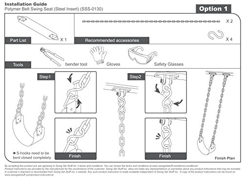 Product Description This commercial grade Polymer belt seat comes with 5.5 ft. Of chains and hooks, s-hooks, and spring clips. For children only up to 125 lbs. Swing hangers are sold separately. 0