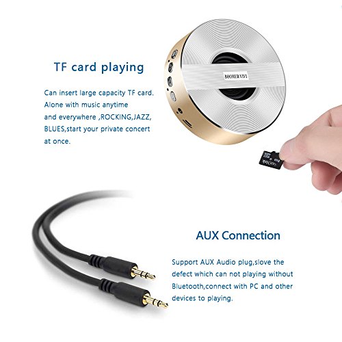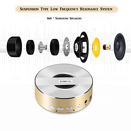 Portable Bluetooth Speaker,BOOMER VIVI Mini Wireless Bluetooth Speaker Loud and Clear Sound Up to 8hrs Playtime Micro SD Card/ USB Reader/ FM Radio 3W Enhanced Bass For iPhone7 7S 6s Plus (Gold)