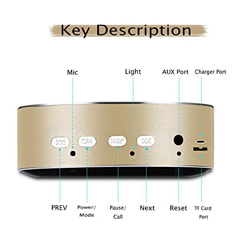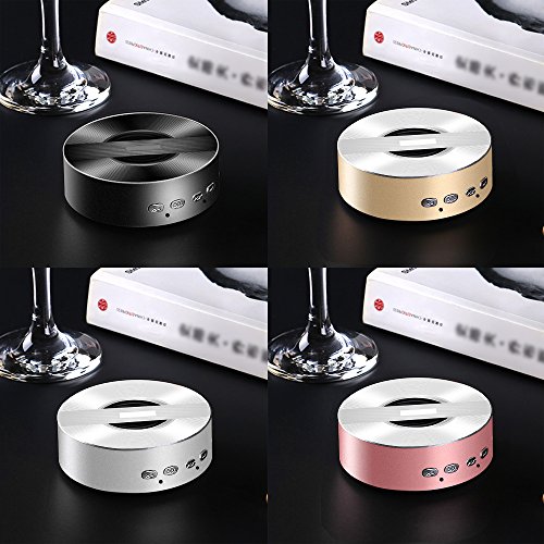 ULTRA-COMPACT:Ultra Mini Size with the novel model.Anti-skid mat on bottom of the speaker to add stability.Aluminum appearance keep stunning outlook and attractive for music lover.You can put it directly in your pocket when go out.