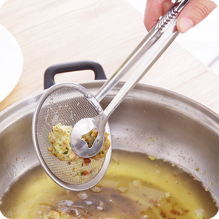 Stainless steel kitchen colander strainer spoon oil fried foods fishing spoon and drain food fried chicken clip filter