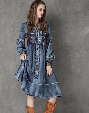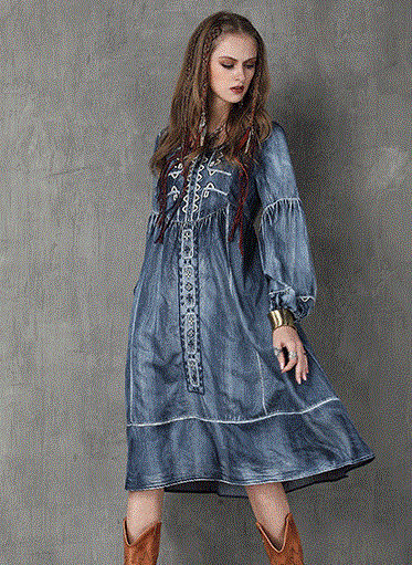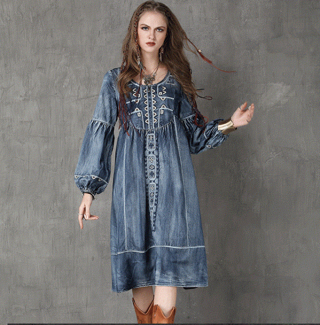 秋物デニムワンピース 2018トレンド レディース 刺繍入り ラウンドネック ブラウス ピンク 長袖 ボヘミアン デニム柄 ベルト付き Oネック Aライン マキシ ワンピース ブルー ノースリーブ フリンジ ボヘミアン ボヘミアン調 エスニック レトロ 刺繍ワンピ ボヘミアン柄 ガウン風ワンピ デニムワンピ 民族衣装 ヒッピースタイル ゴシックアイテム ほんのりダークファッション センシュアル ゴシック風コーデ センシュアル レトロファッション レトロコーデ ワンピース大好き クラシカルなフォルム コンシャス ラグジュアリー オールブラックでドレッシー ブラックのオールインワン ゴシック モノトーンコーデ 毒っ気 パープル 民族風 ヒッピー 映画女優 体型カバー 送料無料 おしゃれ 2018新作