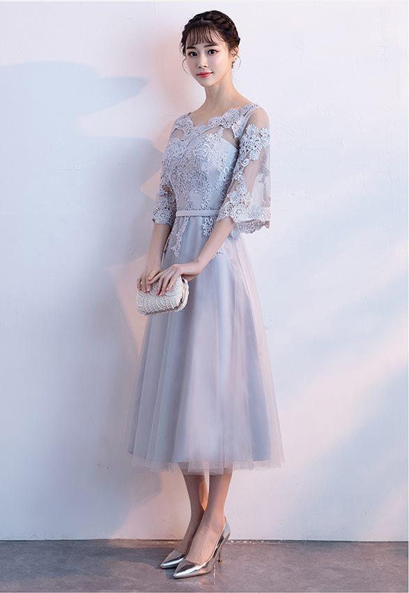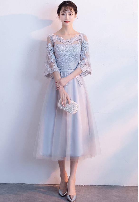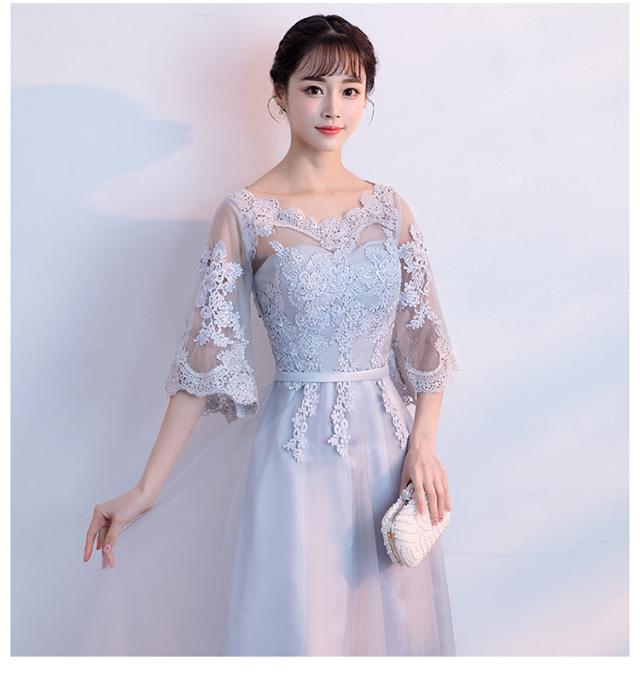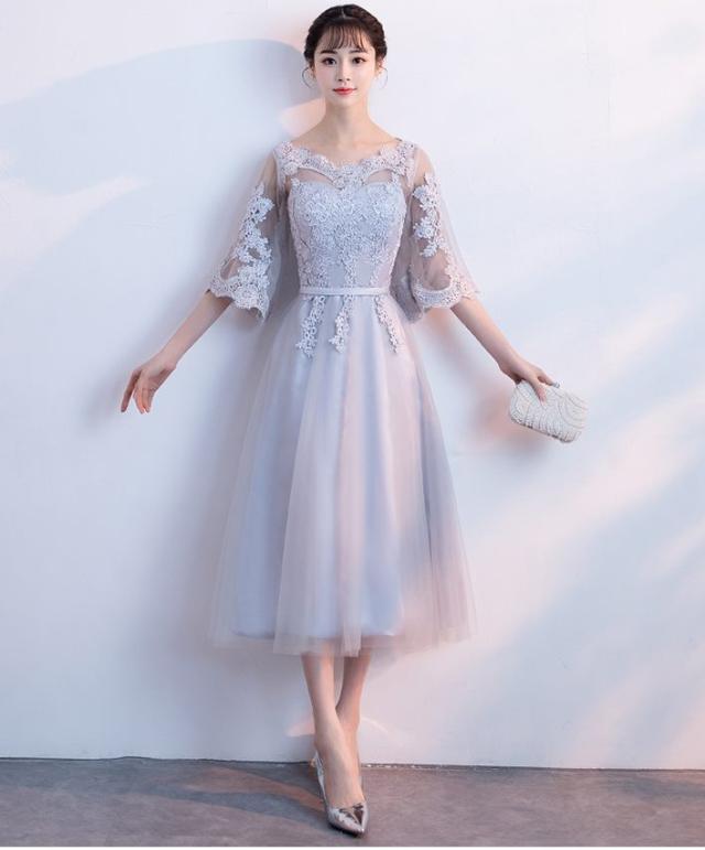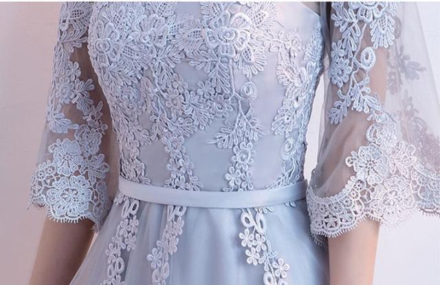 繊細なチュールにアンティーク調の刺繍を施した華やかなパーティードレス。