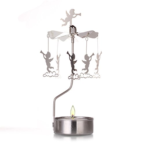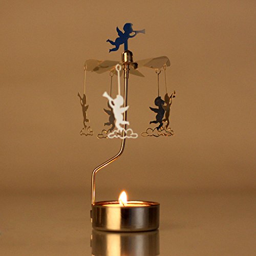 Studio : Mustaner Publisher : Mustaner Binding : Kitchen Product Description 1.They will start to spin and then they seem to slow down and will even stop ,after a while they will re-spin, this is normal status,if the heat is too hot ,the blades will always spinning 2.the candleholder size is 6.5"*3", is smaller gift 3.please do not touch the top bar that supports the spinning blades when the candle is in use. VERY hot! 4.please don't let children touth when the candle in use 0