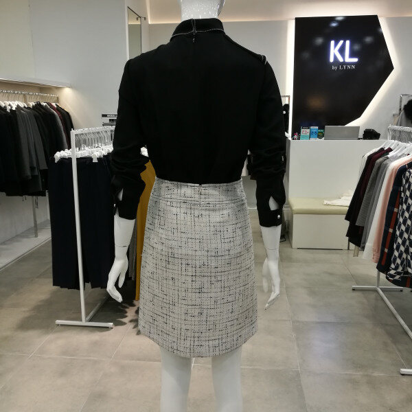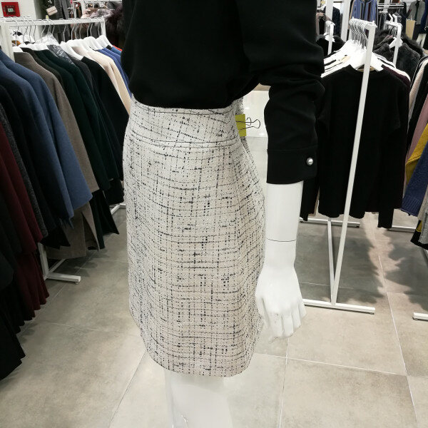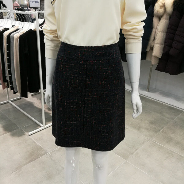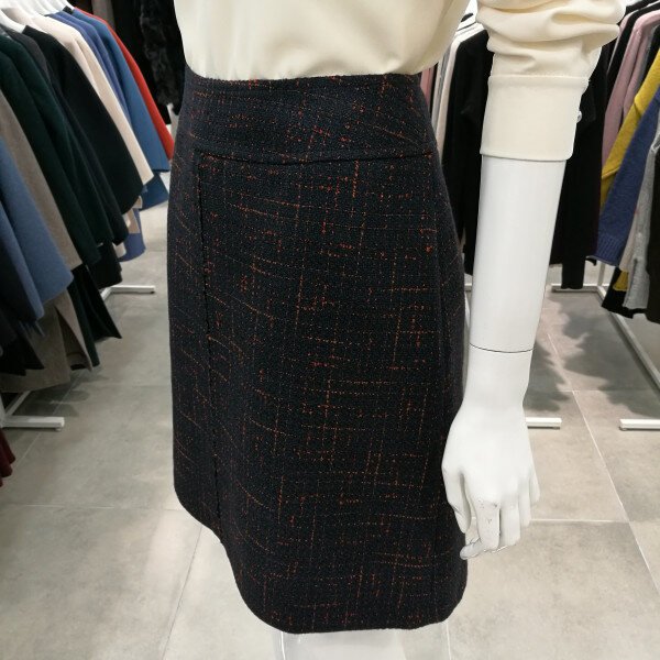 도톰한 소재로 다른스커트보다 길이가 짧다. 세련되고 고급스럽다.