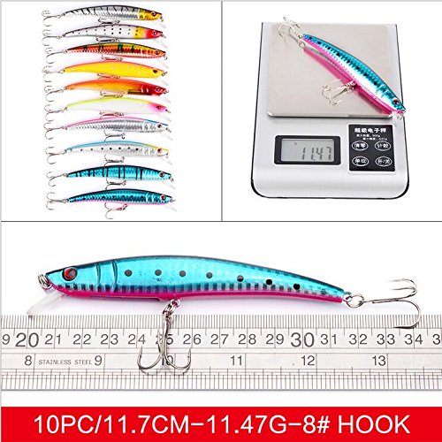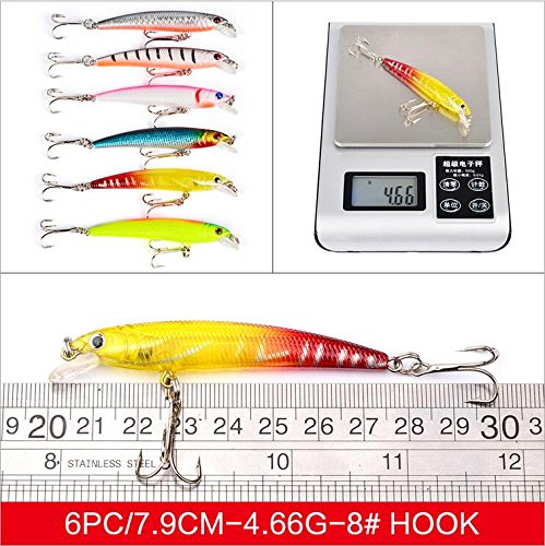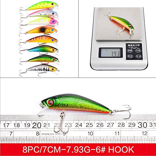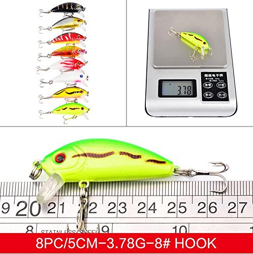 -. Feature : Fishing Lures for Bass -Natural looking 3D eyes and highly reflective holographic finish to attract even the smartest predator. / Fishing Lures for Trout - New enough raw material, its model body is extremely durable. / Fishing Topwater Lures - The streamline body guarantee a stable and seductive swaying action. / Fishing Lures for Freshwater - All the lures hooks are armed BKK super sharp trebles for sure hook-ups. Strong hook makes it impossible for fishes to escape. / Fishing Artificial Bait - Adopts high-quality ABS as material,Eco-friendly, tasteless, non-toxic and anti-dust in material.