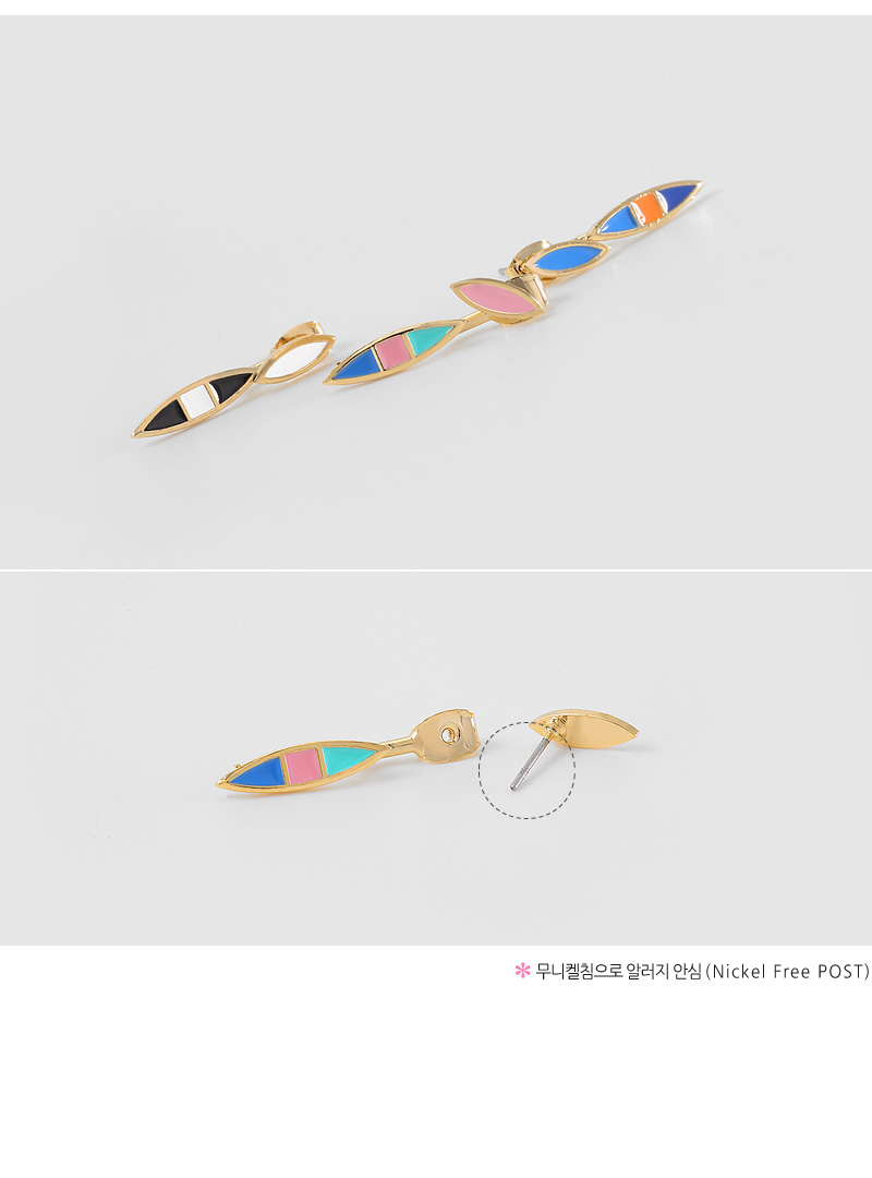 화사한 파스텔톤의 컬러 코팅과 유니크한 디자인으로 매력적인 이어링.