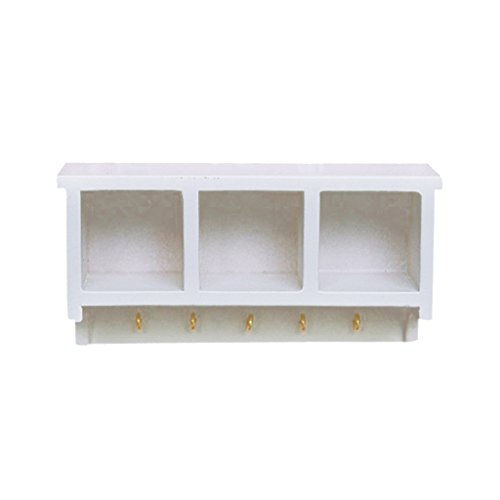 -. Feature : Really cute miniature wall rack with hooks / Three compartments for items placing and five hooks for items hanging, very vivid design / A perfect accessory for your dollhouse kitchen decoration
