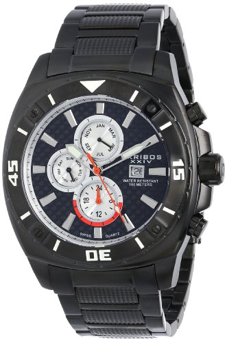 -. Title : Akribos XXIV Men's AK652BK Grandiose Swiss Multifunction Black Stainless Steel Watch with Link Bracelet