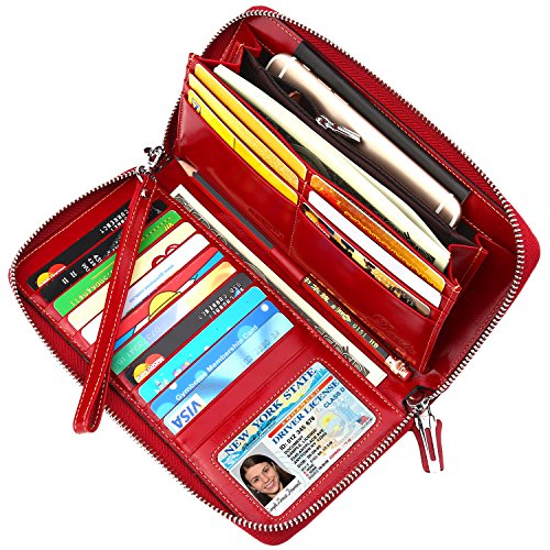 -. Feature : 100% REAL LEATHER - Top grain leather with wax finish, feels luxury and comfortable. Looks even better after using for a long time. / SAFETY & P.R.IVACY - Our wallets are equipped with advanced unique proP.R.Ietary blocking material, which blocks RFID signals and protects the valuable P.R.Ivate information stored on RFID chips from unauthorized scans. Tested & Approved by Independent Test Lab.Tested from 10MHz to 3000MHz, including 13.56 MHz in which the credit cards operate. / FUNCTIONAL DESIGN - 17 credit card slots, 1 ID window with central cut out over,1 zipper pocket for change,3 currency pockets and one pen loop, this wallet is suitable for cash, coins, cell phone like as iphone7 plus, passport, pen, checkbook and with a removable wrist strap. / PRACTICAL - Great wallet with a wristlet strap,it allows you to easily carry it in hand or put it in bag. You can use it all the time it's so easy to carry around. Dimensions: 8.5"L x 4.3"W x 1.0"H / 100% MONEY BACK GUARANTEE - We know you'll love our wallet as much as we do, If for any reason you're not 100% SATISFIED, let us know and our customer service team will make things right: full refund or a free replacement, whichever you prefer.