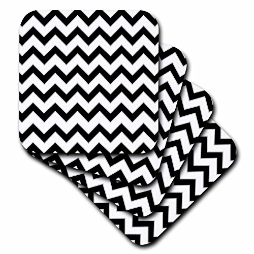 3dRose cst_110747_2 Chevron Pattern Black & White Zigzag Soft Coaster (Set of 8)