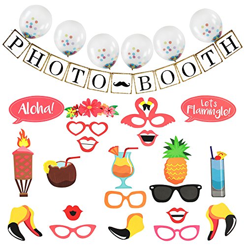 AMZTM Summer Hawaiian Beach Pool Party Funny Pineapple Decorations 21 PCS Photo Booth Props + 1 PCS PHOTO BOOTH Banner + 6 PCS 12'' Balloons (28)