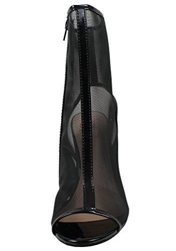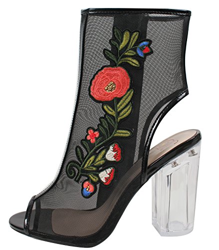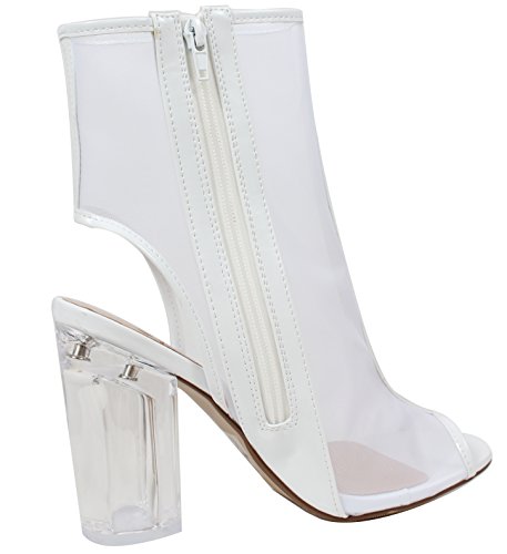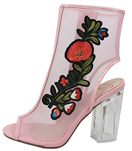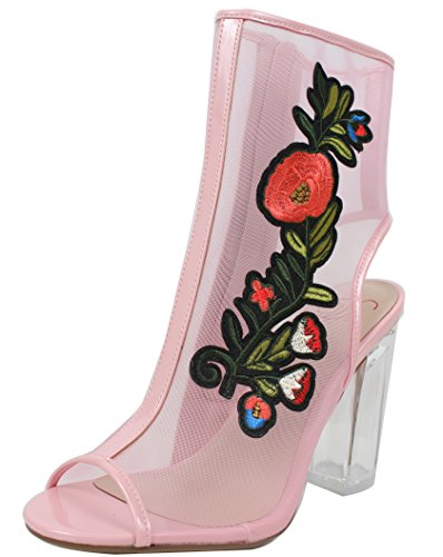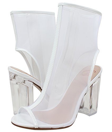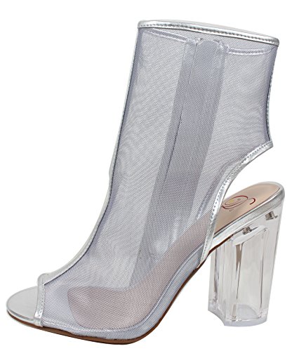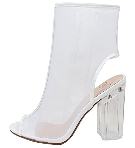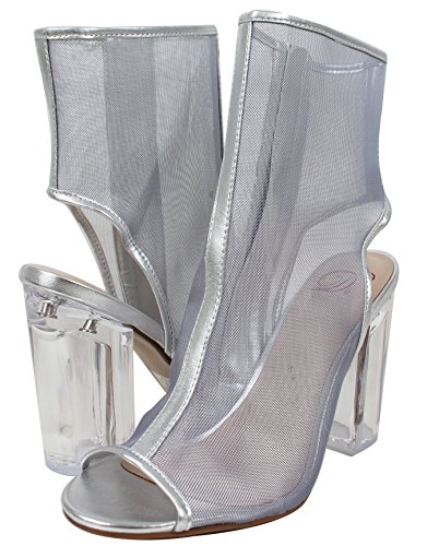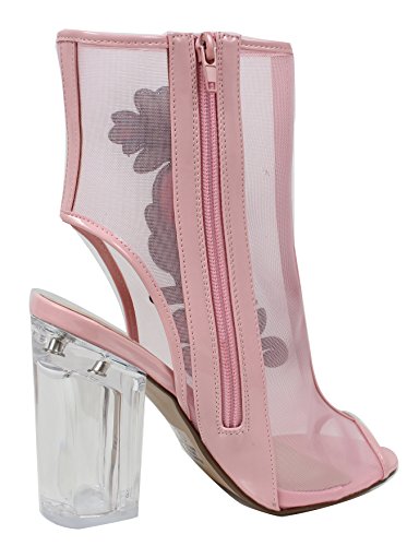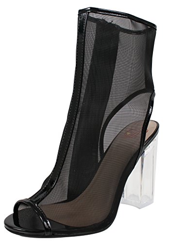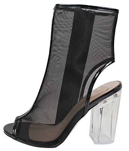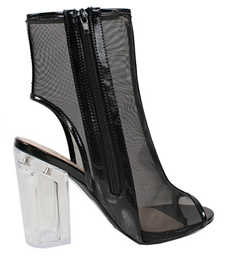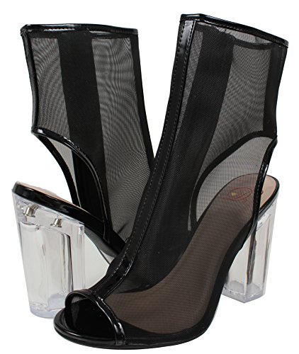 Delicious Women's Open Toe Mesh Block Chunky Clear Perspex Heel Ankle Boot Bootie