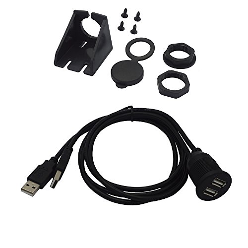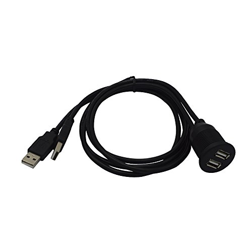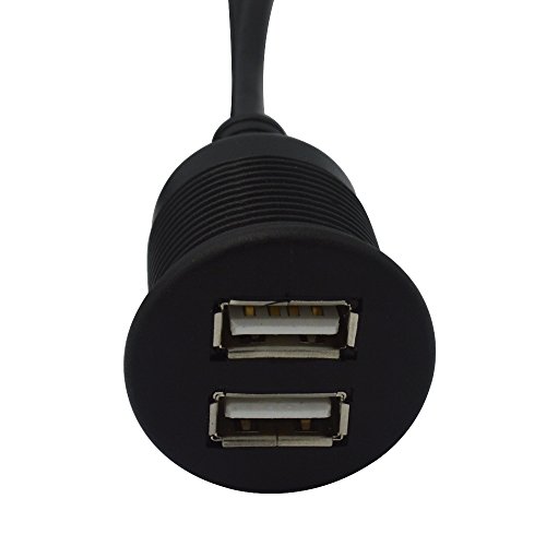 BITOO Dual USB Panel Flush Mount Extension Cable- 1 Meter 3.3FT Dual USB 2.0 Extension USB Mount, Dash Mount, Flush Mount, Panel Mount Cable for Car Boat Motorcycle