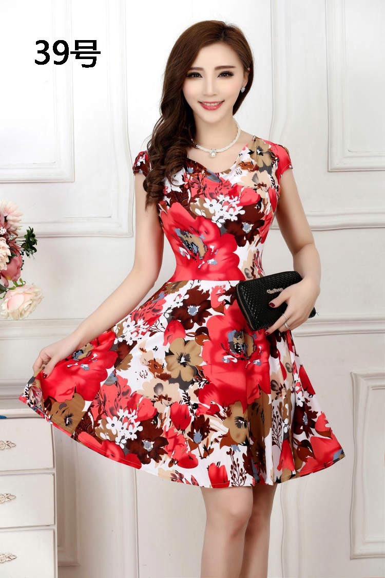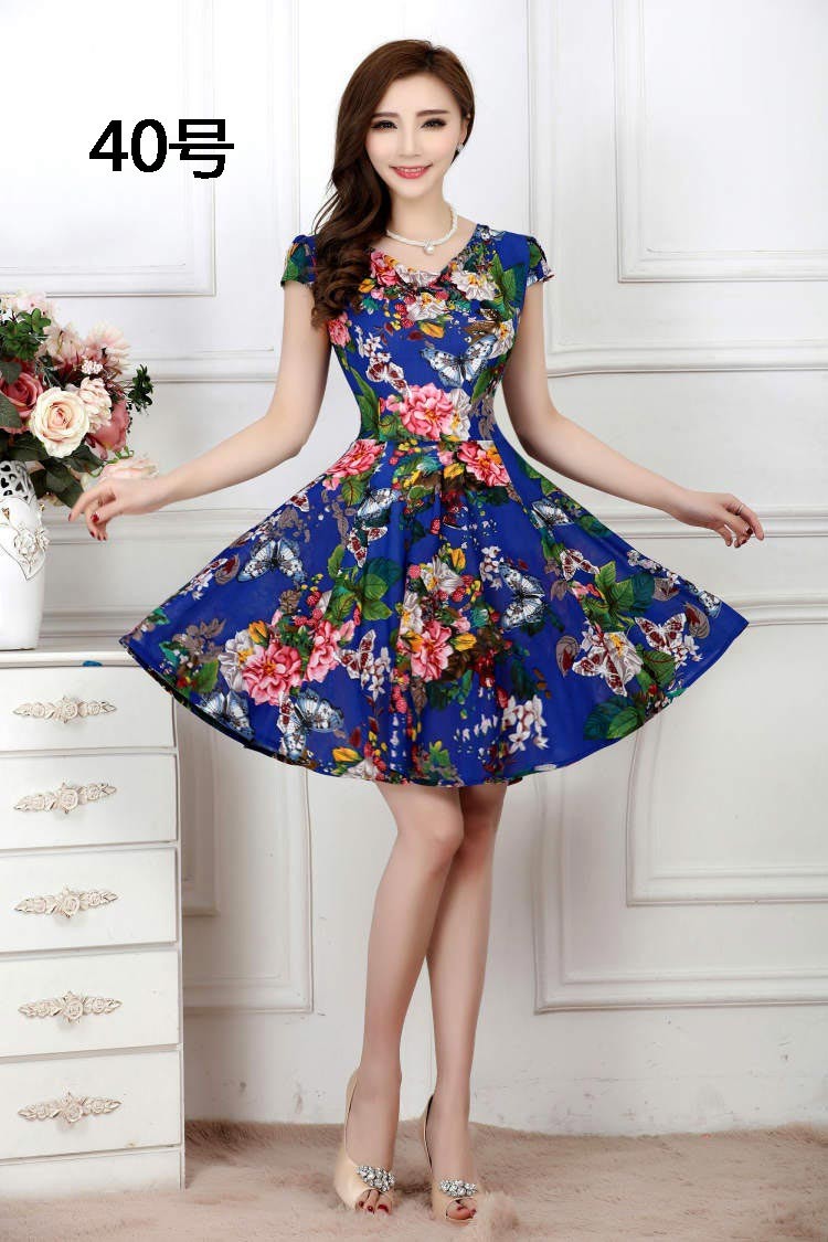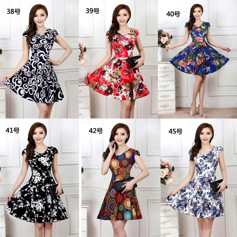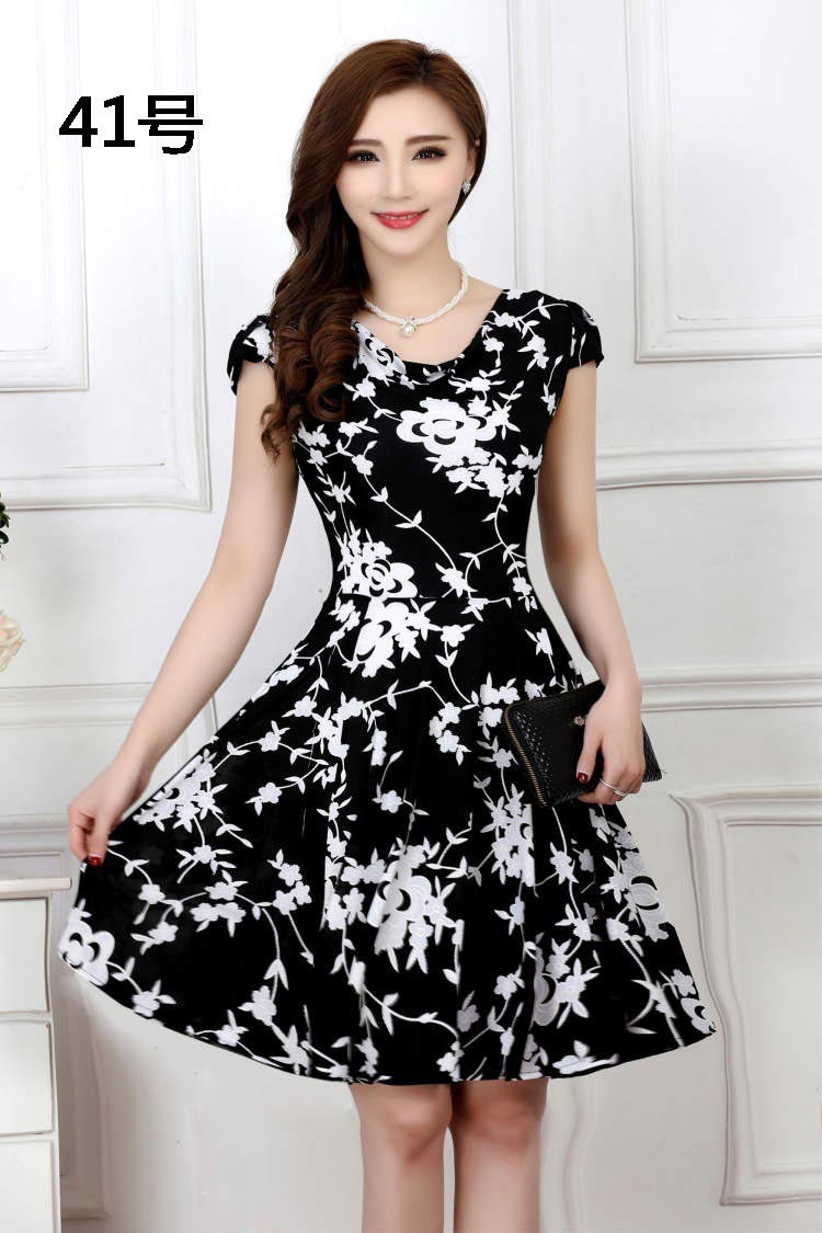 ラウンドネック・ウエストシェイプライン・膝丈フレアスカートワンピース♪