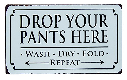 - A humorous take on doing laundry, this sign states, "Drop Your Pants Here. Wash, Dry, Fold, Repeat"