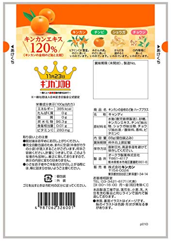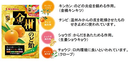 原材料:水飴(鹿児島県製造)、砂糖、キンカンエキス、チンピ抽出物、ショウガ抽出物、チョウジ抽出液/酸味料、香料、ビタミンC
