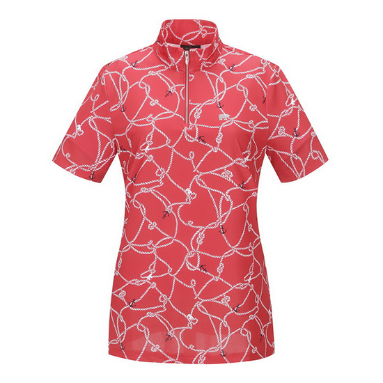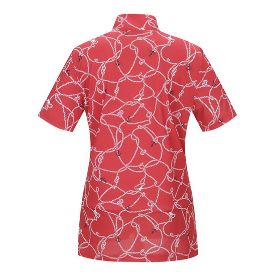 - 로프 프린트 디자인의 텍스쳐를 적용한 여성 티셔츠.
