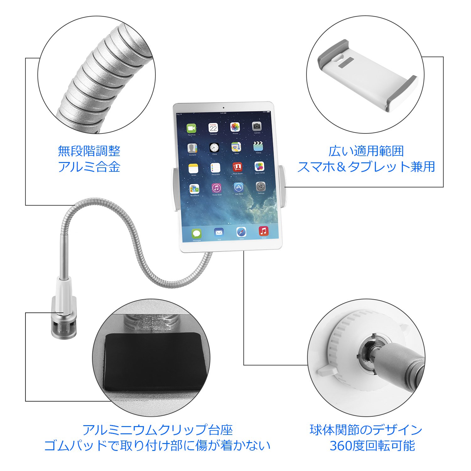 Since it can be adjusted from 3.5 to 10 inches, it is convenient with two smartphone and tablet dual combinations.