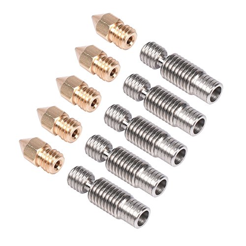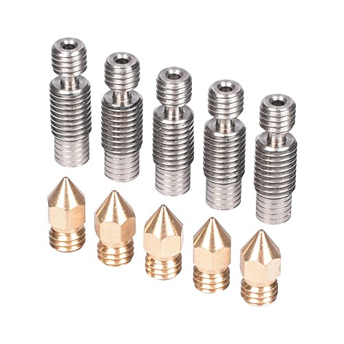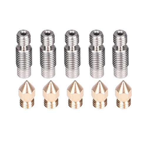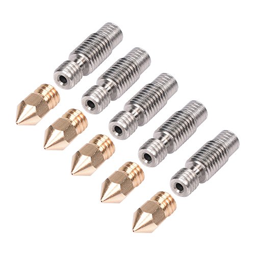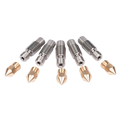 Throat Specification: Material: Stainless Steel Inner diameter: 2mm for 1.75mm filament Nozzle Specification: Type :0.4mm Extruder Brass Nozzle Print Head Color: Golden Material: brass Size: 5*13mm Input Diameter: 1.75mm Output Diameter: 0.4mm Package Content: 5 x all-metall throat with 5 x 0.4mm Brass nozzle