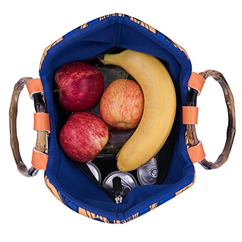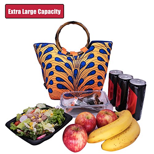 CHAUDER Insulated Neoprene Lunch Bag: Large Lunch Tote Carry Case Box Cooler Container with Zipper, Washable, Reusable, For Women, Girls, To School, Office (Ankara Peacock)