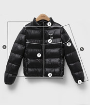 尺码 ①肩宽 ②胸围 ③下摆围 ④袖口围 ⑤袖长 ⑥后中长 ⑦上臂围