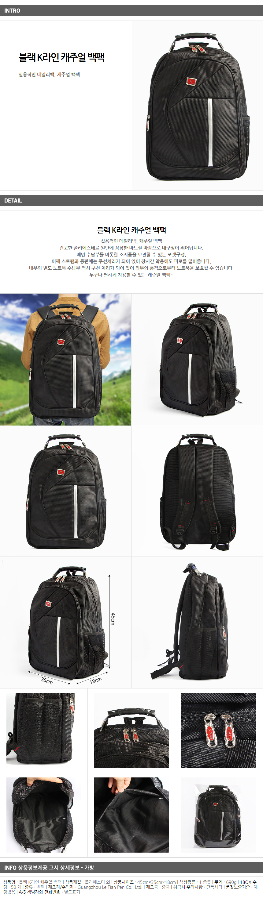 <상품명 : ZP8 블랙 K라인 캐주얼 백팩>