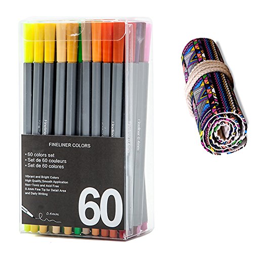 -. Title : WOWENWO Fineliner Color Pen,Set of 24/60/100 Assorted Colors,0.4mm Fine Line Sketch Drawing Pens Fine Point Coloring Markers with Canvas Roll Up Pouch Case for Coloring Book and Bullet Journal