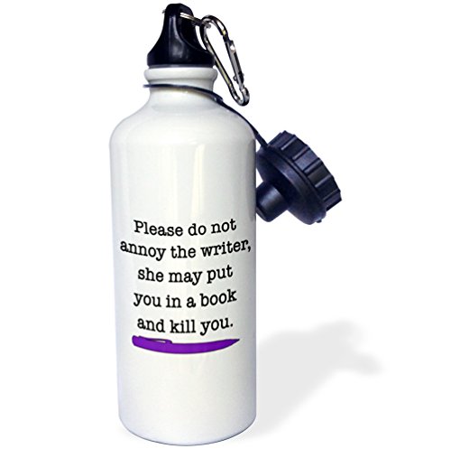 3dRose wb_223959_1 "Please Do Not Annoy The Writer Purple" Sports Water Bottle, 21 oz, White