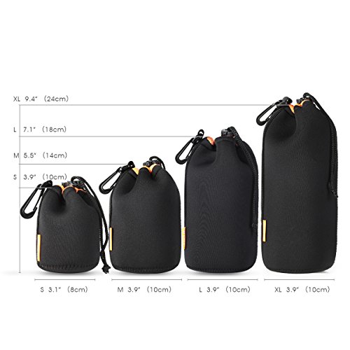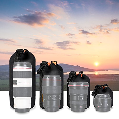 Lens Case, K&F Concept 4 Piece Soft Neoprene Lens Pouch Bag Cover Black Extra Thick For Sony Canon Nikon Pentax Olympus Simga Tamron DSLR Camera Lens (S M L XL)