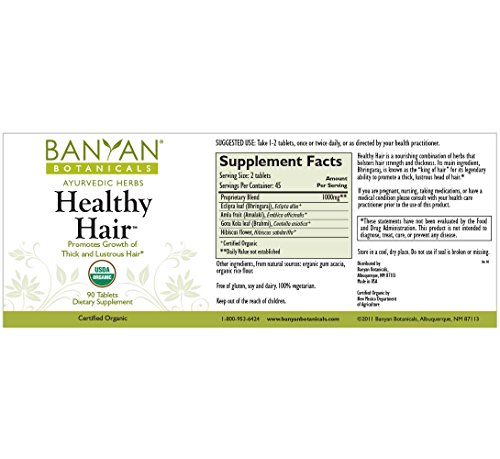 Promotes Growth of Thick and Lustrous Hair* According to Ayurveda, the early onset of gray hair and balding are indicative of excess pitta in the system. Healthy Hair combines powerful detoxifying herbs that remove excess pitta from the body while supporting the factors that lead to healthy hair growth. Its main ingredient, Bhringaraj, is known as "the ruler of the hair," for its historical use as a rejuvenative for the scalp and hair. Healthy Hair cleanses the liver, helping the body support hair growth, while providing the nutrients that lead to a thick, lustrous head of hair.*