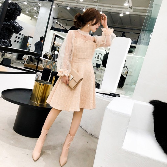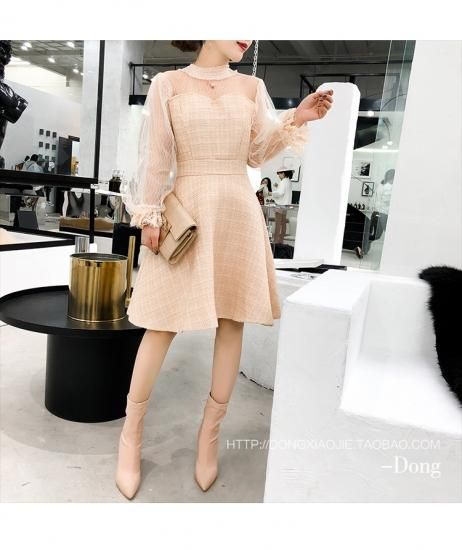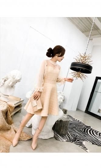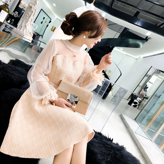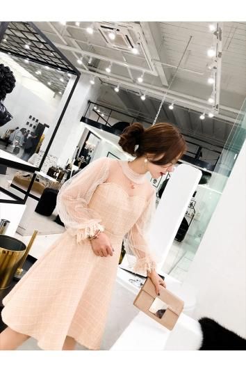 ドレス ワンピース 膝丈 シースルー ガーリー 可愛い パーティー 二次会 華やか drgz1574