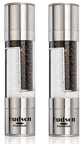 Hudson Deluxe 2 in 1 Salt and Pepper Grinder Set - Ceramic Blade & Stainless Steel - Set of 2 Manual Mills