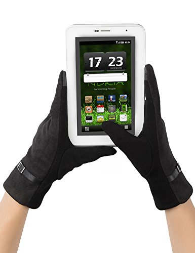 Equipped with touch screen technology to enable smartphone and tablet use while keeping hands warm in the cold weather. The touch screen parts are on the index fingers of both gloves and also the thumbs. They have a satin inset on the thumb and first finger to allow for use with a cell phone or touch screen device. They are very versatile and work well as driving gloves and outdoors on the cellphone. It allows you to wear winter gloves and text while wearing gloves so that your fingers don't go cold again.