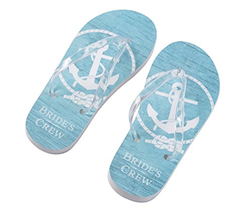 -. Title : Lillian Rose FF674 MC White & Aqua Bride's Crew Flip Flops