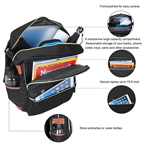 Multi Compartment: main compartment with padded sleeve for 15.6'laptop computer and several functional pockets allow you to put key, phone, umbrella, wallet etc.