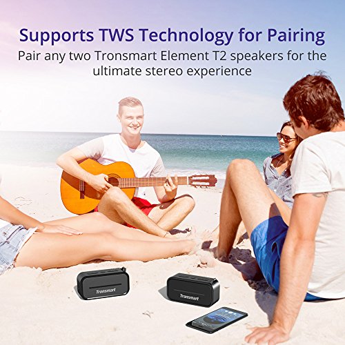 【True Wireless Stereo Function】Thanks to TWS function, pair any two T2 speakers, you can achieve true wireless Bluetooth playing for left and right channels separated of two Tronsmart T2 speakers. Just control the TWS master device, then audio can be played in sync on both devices with double enhanced stereo sound.