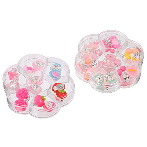 Girls clip-on earrings set: package includes 14 pairs of clip-on earrings with different styles; Come with 2 clear boxes, there are 7 pairs in a box, easy to carry and store
