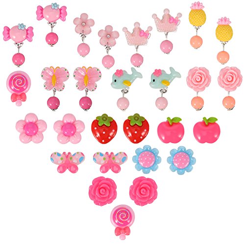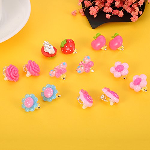 Mtlee 14 pairs clip-on earrings girls play earrings with different styles for party favor, all packed in 2 clear boxes